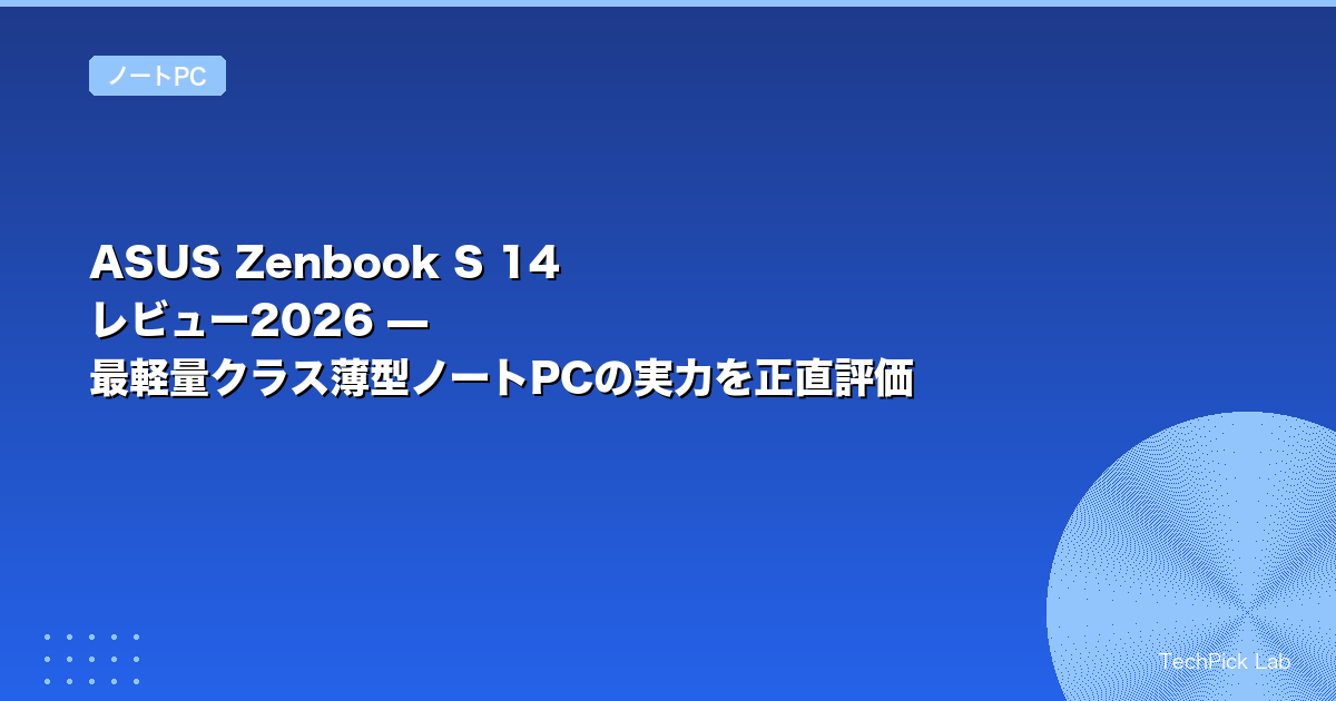 ASUS Zenbook S 14は「軽量・薄型・高性能・OLED」の4条件をできる限り高水準で揃えたノートPCです。TechPick Labでは2週間、毎日の通勤・出張・カフェ作業に持ち歩きながら実力を検証しました。結論:1.2kgという軽さは毎日の持ち運びを根本から変えます。OLED有機ELディスプレイの美しさとAMD Ryzen AIの日常性能も申し分ない水準です。「軽量ノートPCのベストバランス」を探している人に強くおすすめできます。(2026年3月更新)
