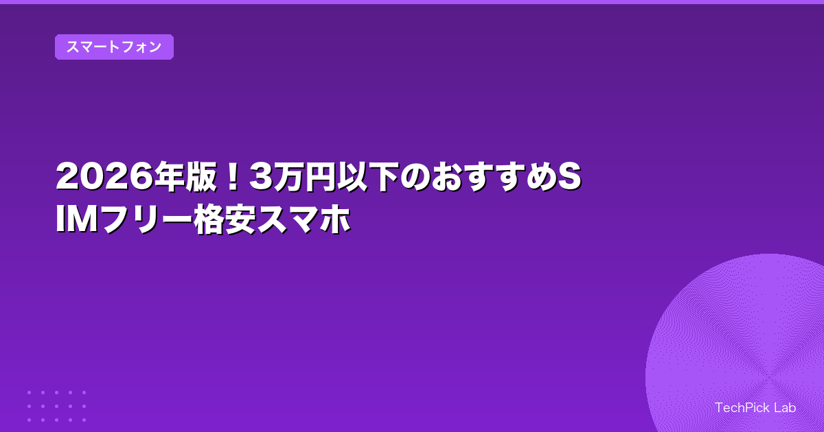 2026年最新!3万円以下で買えるコスパ抜群のSIMフリー格安スマホを厳選してご紹介します。この記事では、最新トレンドから選び方のポイント、価格帯別のおすすめモデルまで徹底解説!迷ったときのおすすめモデルも紹介しているので、ぜひ参考にしてください。