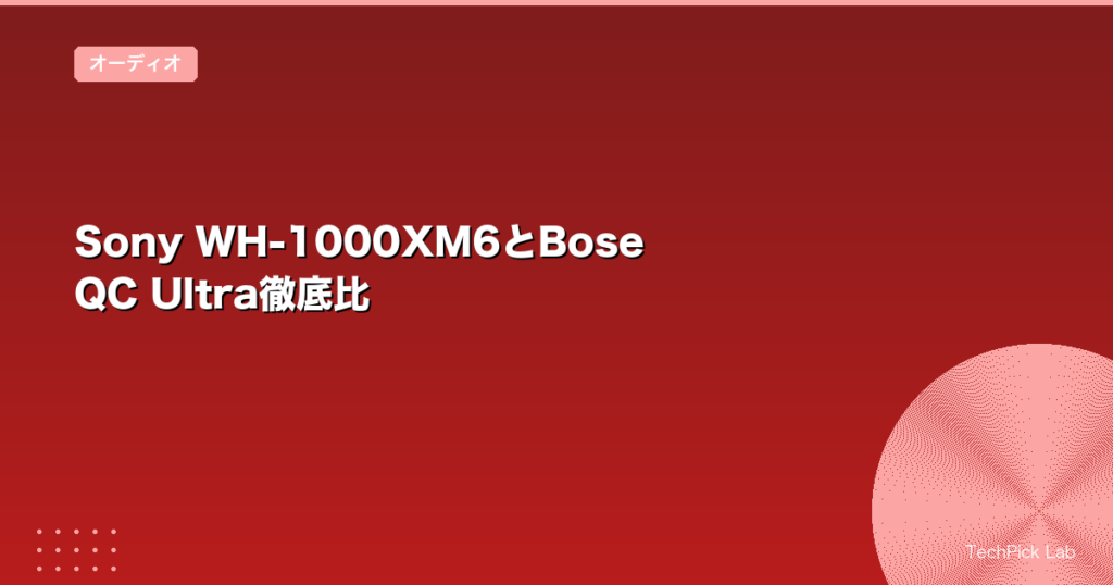 当サイトではアフィリエイト広告を利用しています。リンクを通じて購入された場合、運営者に報酬が支払われることがあります。 Sony WH-1000XM6 vs Bose QC Ultra Headphones 比較【2026年3月更新】 Sony WH-1000XM6とBose QC Ultra Headphonesは、ヘッド... -