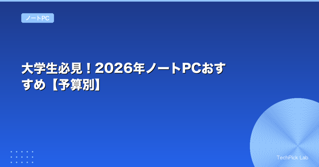 ※本記事にはアフィリエイトリンクが含まれています。リンクから購入いただくと運営者に収益が発生することがあります。 大学生向けノートPCおすすめ2026年版【予算別】 2026年3月更新|春から大学生になる皆さん、入学準備の一環としてノートPCの選定で悩... -