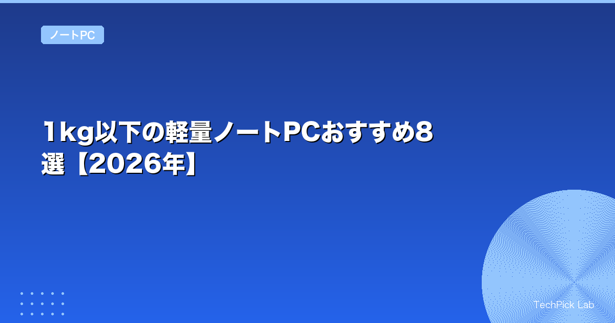 【2026年版】1kg以下の軽量ノートPCおすすめランキング8選