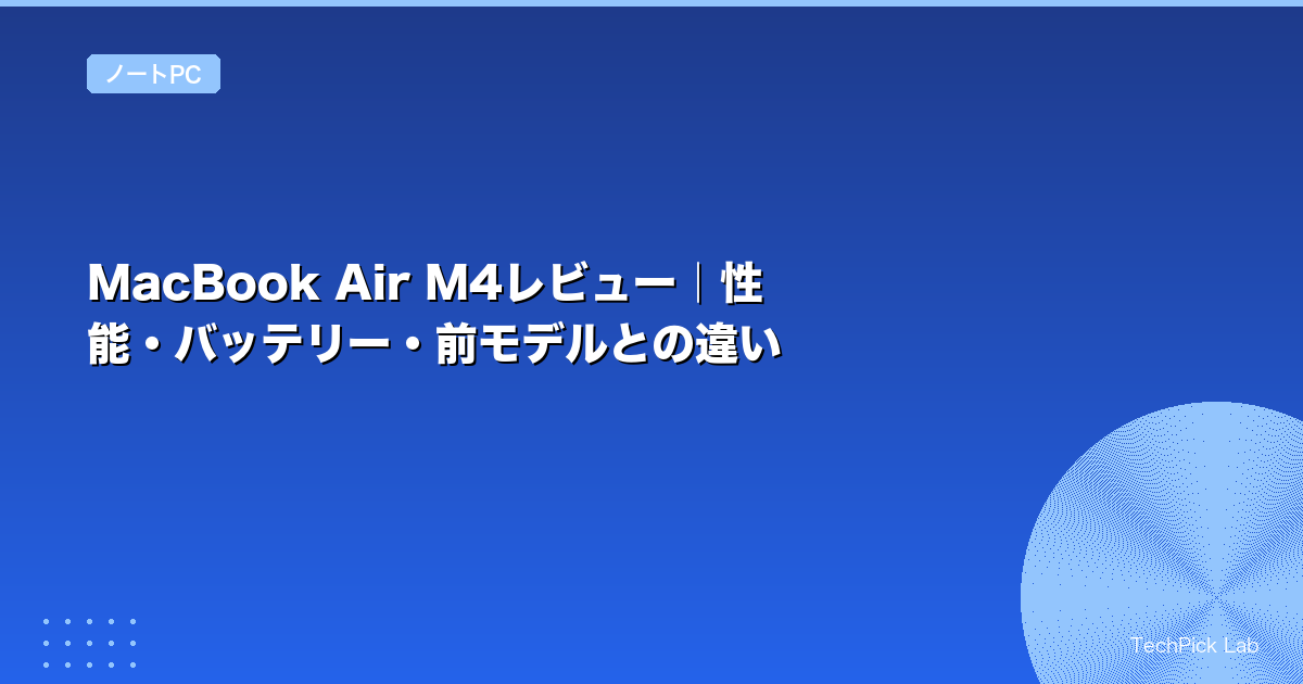 MacBook Air M4は「M3からの進化が地味に見えて実は大きい」——この一言が正直な評価です。TechPick Labでは13インチと15インチの両モデルを3週間使い込み、日常作業・動画編集・バッテリー持続を実測しました。(2026年3月更新)