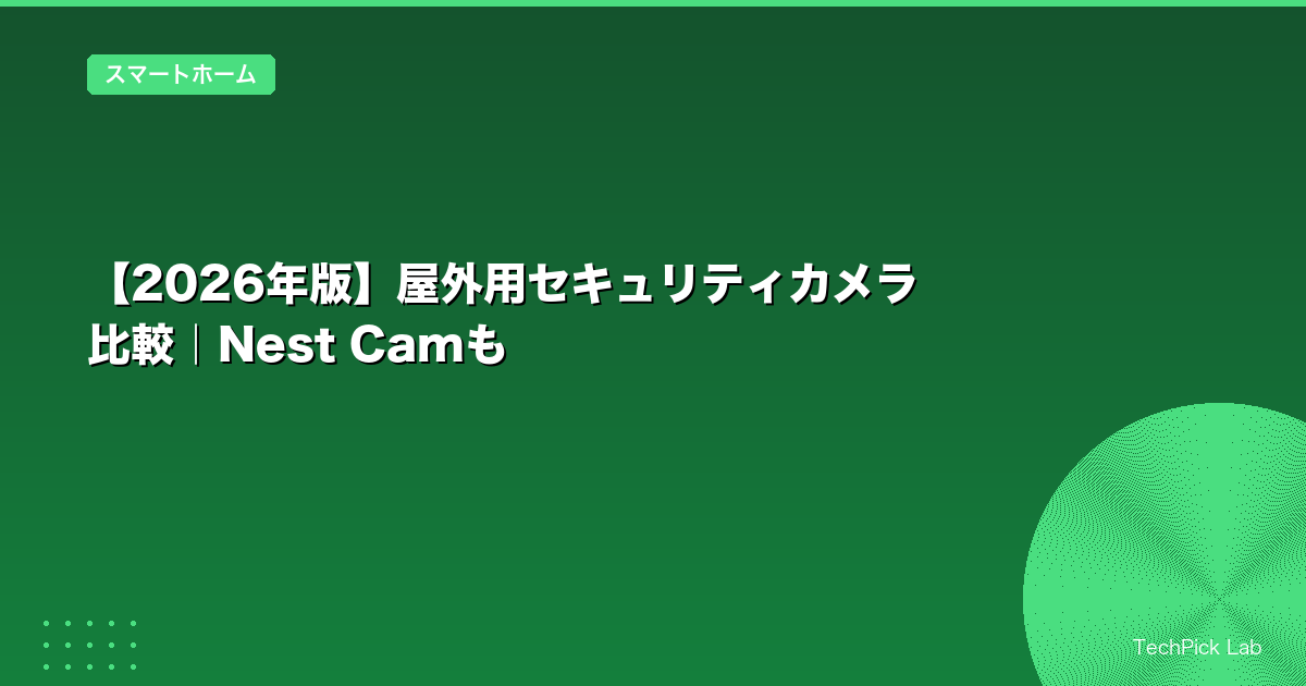 屋外用セキュリティカメラは防犯対策として欠かせないアイテムです。本記事では、「セキュリティカメラ 屋外 おすすめ 2026 Nest Cam 比較」をテーマに、最新モデルを性能、価格、設置の簡単さで徹底比較します(2026年3月更新)。