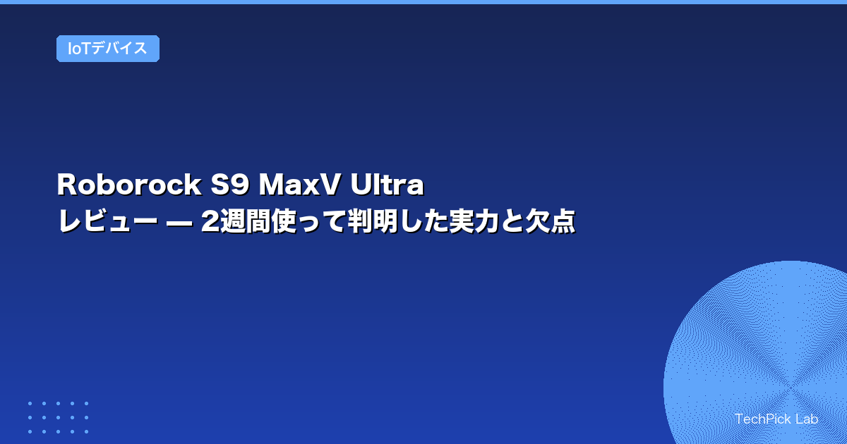 Roborock S9 MaxV Ultraは「吸引・水拭き・セルフクリーン・自動ゴミ捨て・自動給水」を1台で完結させる全自動フラグシップモデルです。価格は15〜18万円台と高額ですが、「週1回のゴミ捨て以外ほぼノーメンテナンス」という体験は他の価格帯では再現できません。本記事ではTechPick Lab 2週間の実機使用結果をもとに、実力と欠点を正直にレビューします。(2026年3月更新)