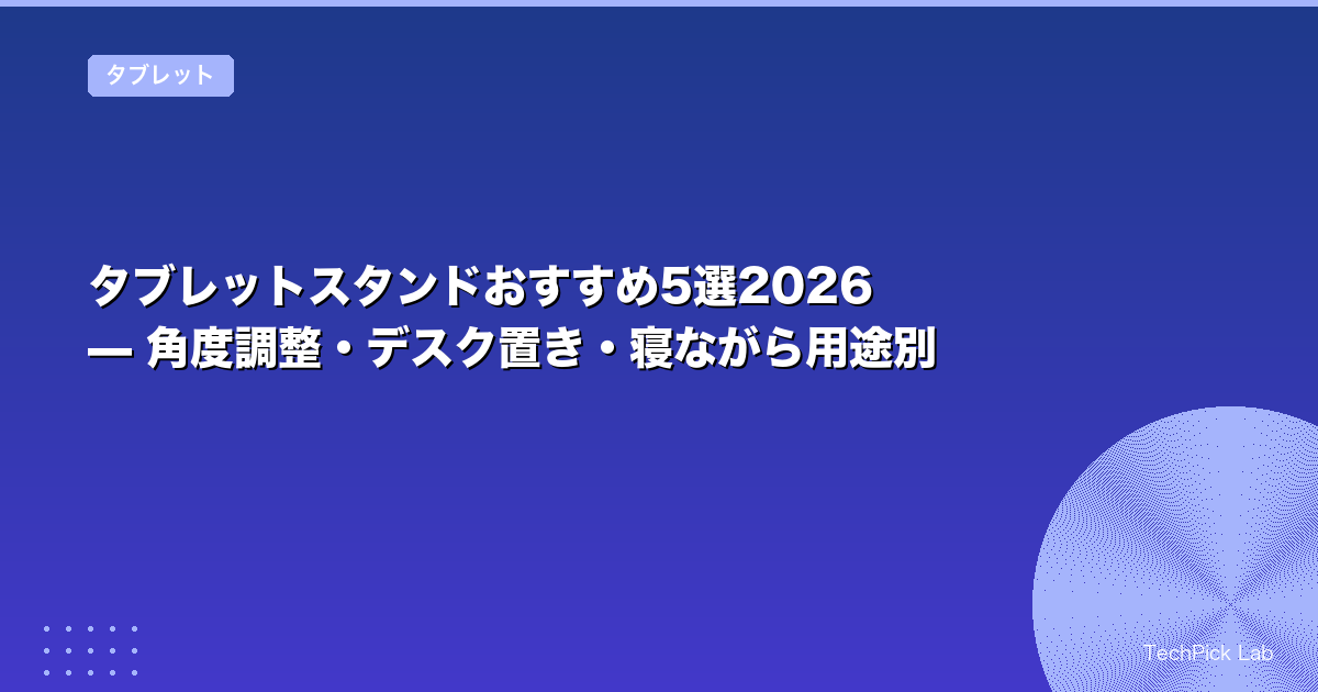 タブレットスタンドは「角度調整の幅」「安定性」「使用シーン」で選ぶのが正解です。デスクでのテレワーク・料理中のキッチン利用・ベッドでの動画視聴では、それぞれ最適なスタンドの形状が異なります。本記事ではTechPick Lab編集部が実際に試したおすすめ5製品を用途別に紹介します。(2026年3月更新)